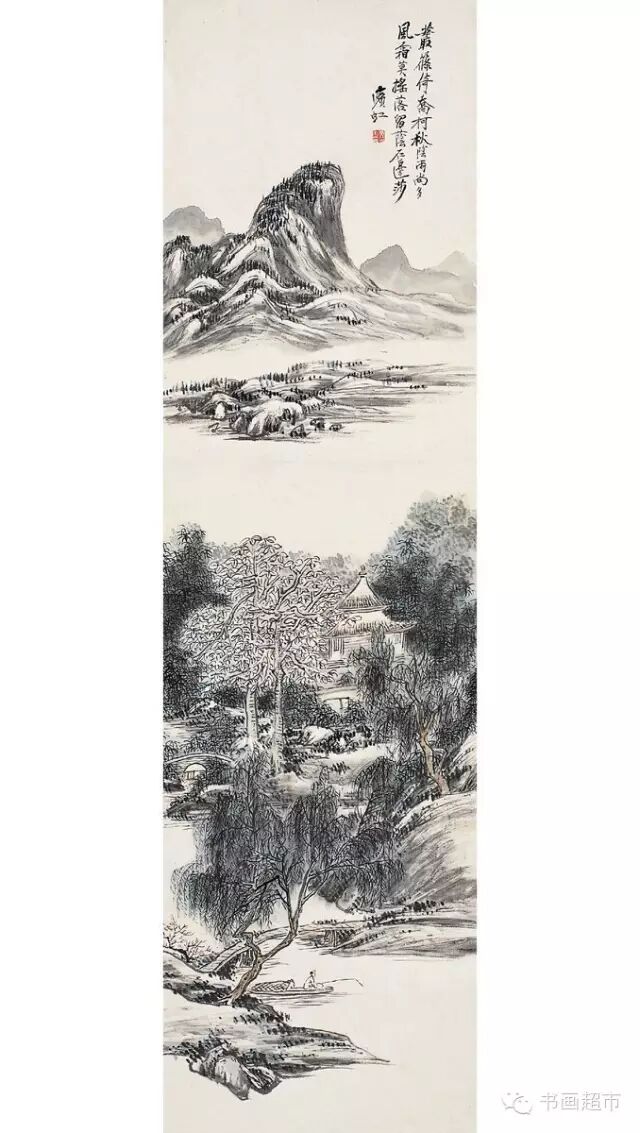 黄宾虹 1951年作 左湖右岭67.5×32.2cm33
