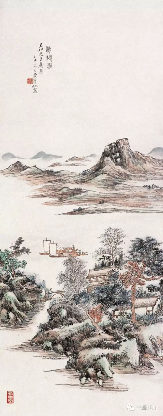 黄宾虹 1950年作 西谿泛舟80×36cm28.6
