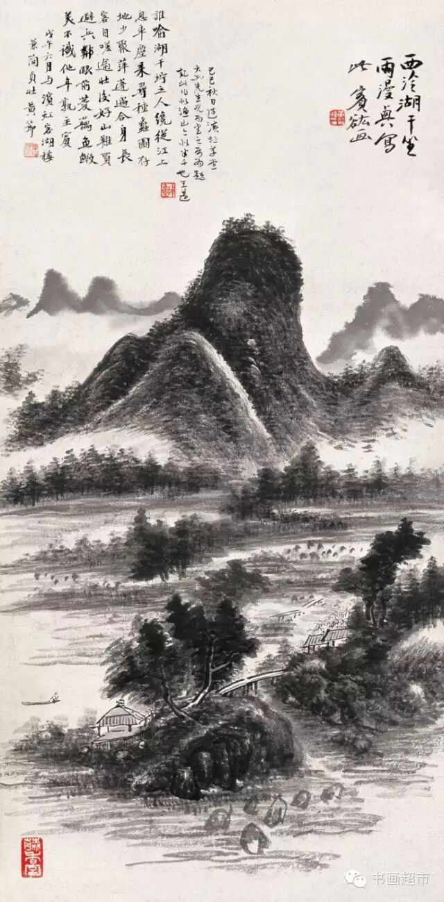 黄宾虹 1950年作 湖山欲雨68×30.5cm72.6