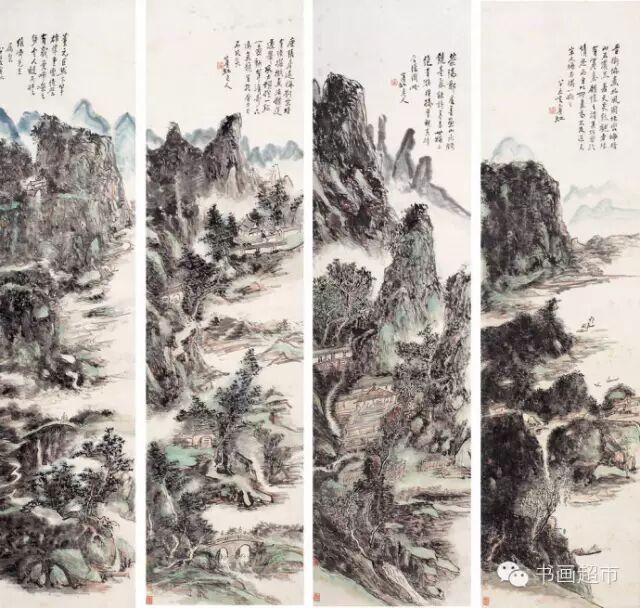 黄宾虹 1949 山水四屏153×40.5×4cm643.5